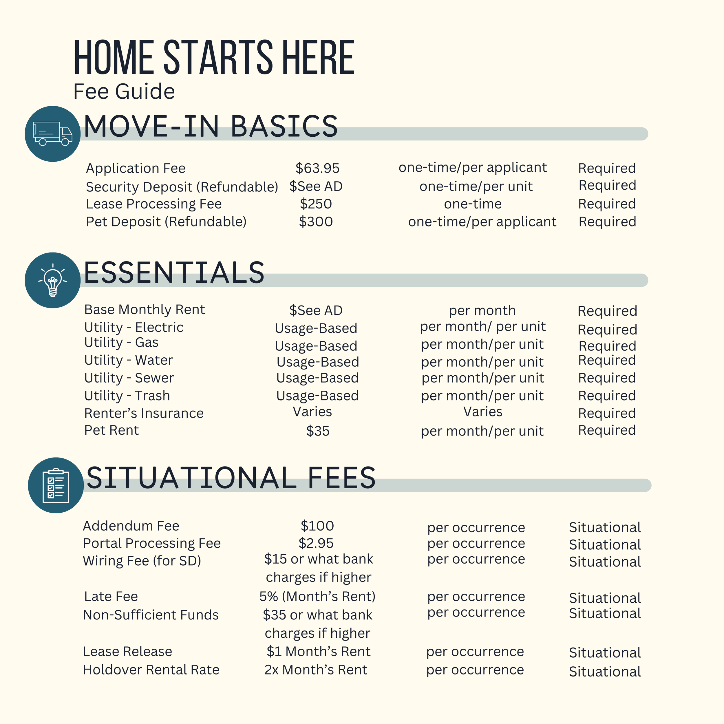 Tenant Responsibilities: All Utilities